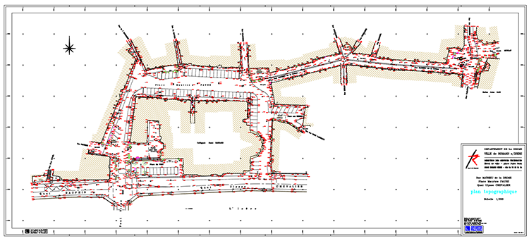 Le plan topographique est un dessin à l’échelle qui représente un terrain avec toutes ces caractéristiques : bâtiments, voirie, réseaux, mobilier urbain, végétaux…